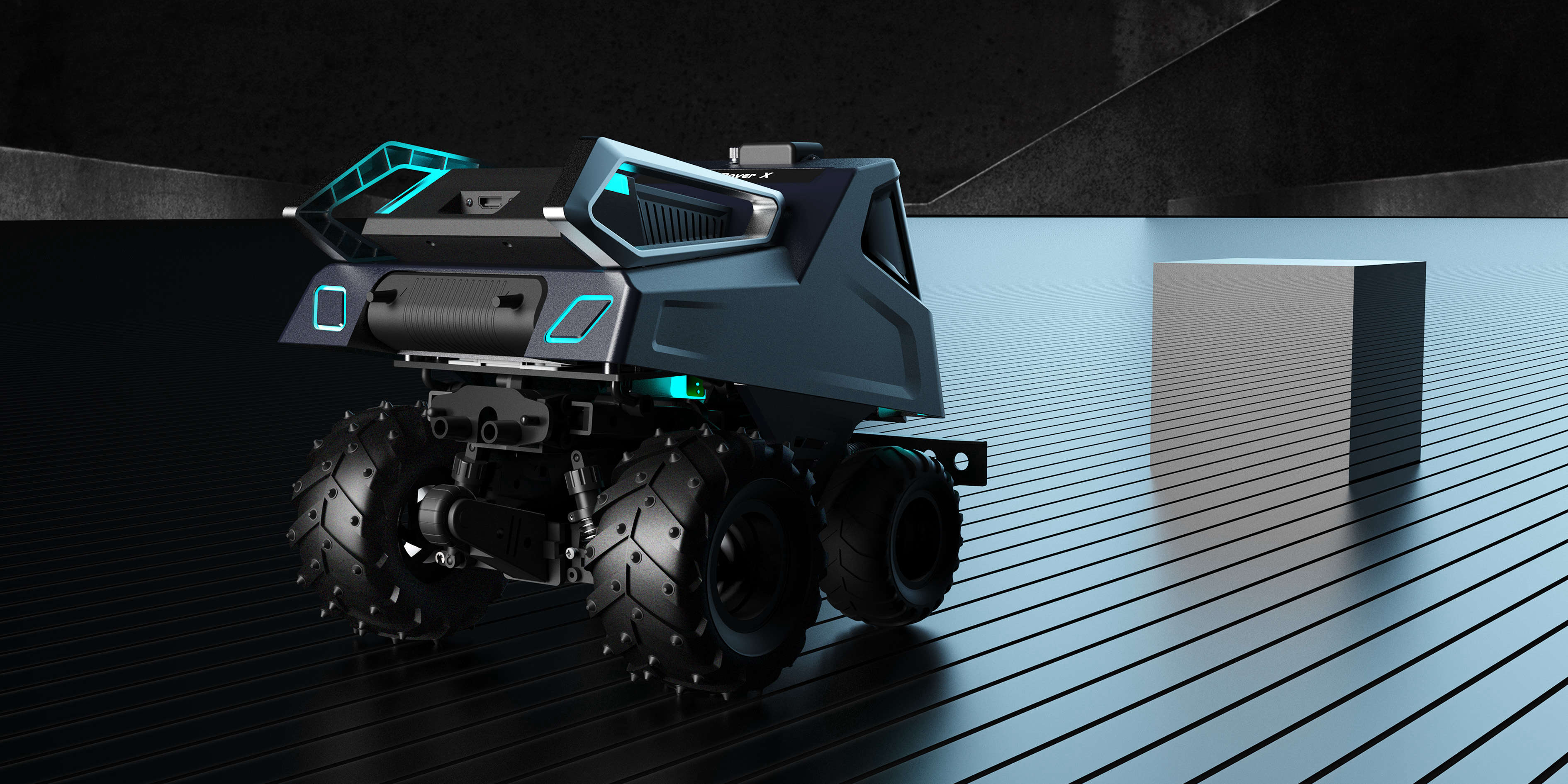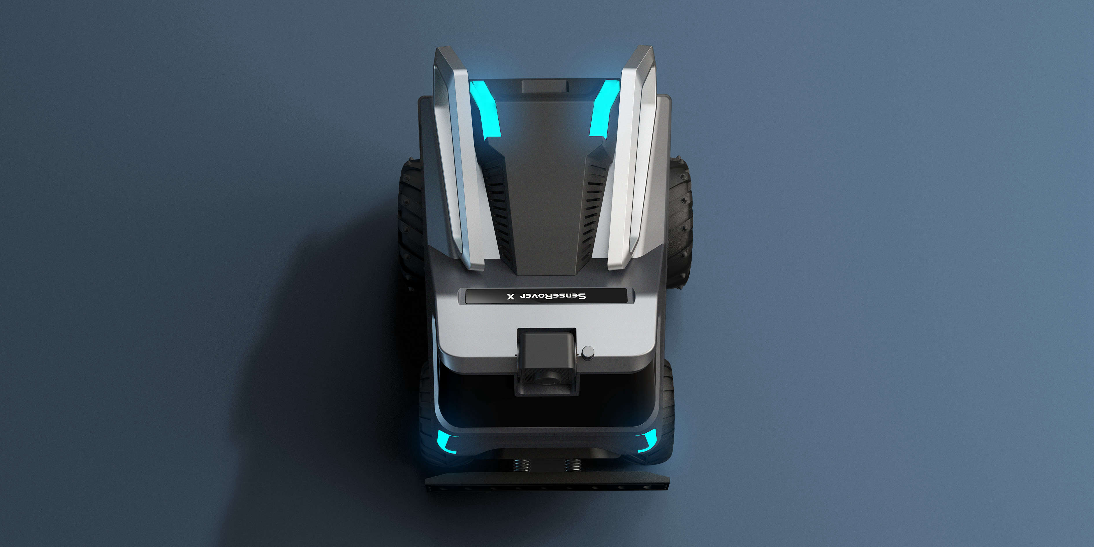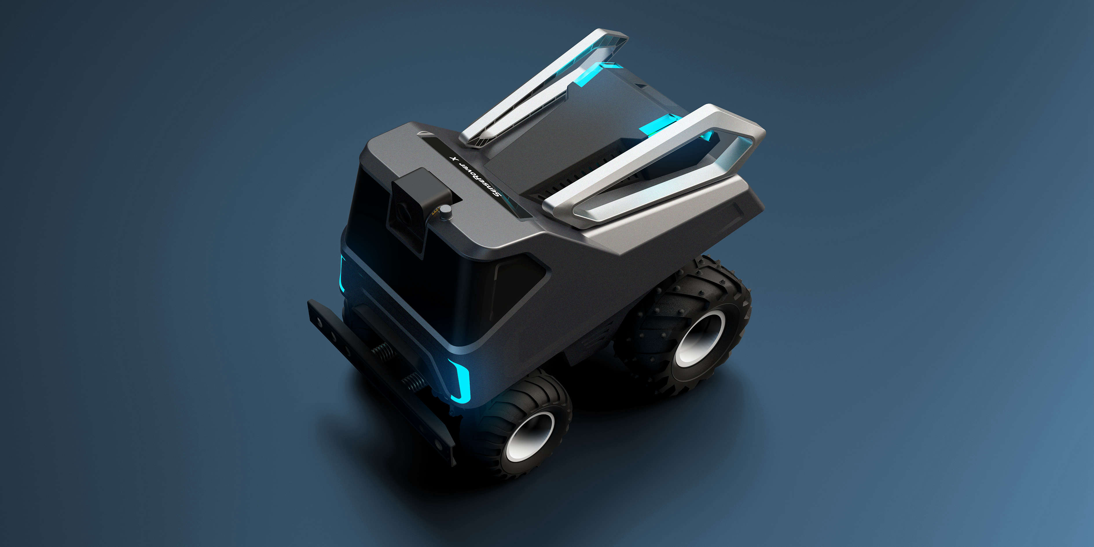 在外觀造型上以科技+輕盈為主題采用仿生設(shè)計(jì)手法,以“蟬”為基礎(chǔ)形態(tài)。車體前臉的大面積視窗主要功能方便電池的取出而又不失科技感。背部?jī)梢斫饘僦Ъ苣M蟬的翅膀,主要功能是方便車體被拾取;槍灰色的金屬質(zhì)感與燈光的運(yùn)用其目的也是為了突出該產(chǎn)品的未來感。
