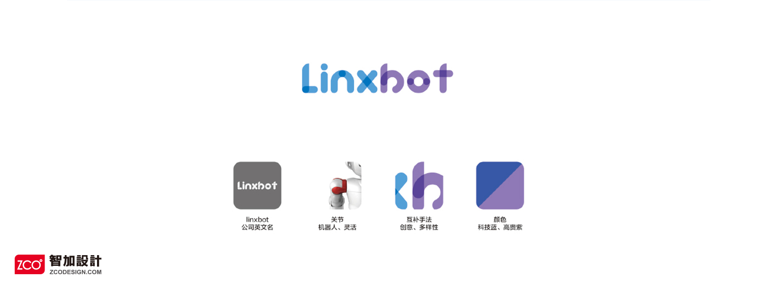 針對linbot,要從整體來看,有科技和先進的感覺,具有實力的象征,又蘊含著企業的文化底蘊。標志運用了互補手法,體現了創意和多樣性;顏色采用了科技藍和高貴紫,展示了產品追求科技腳步的決心和秉承品質至上的態度。
