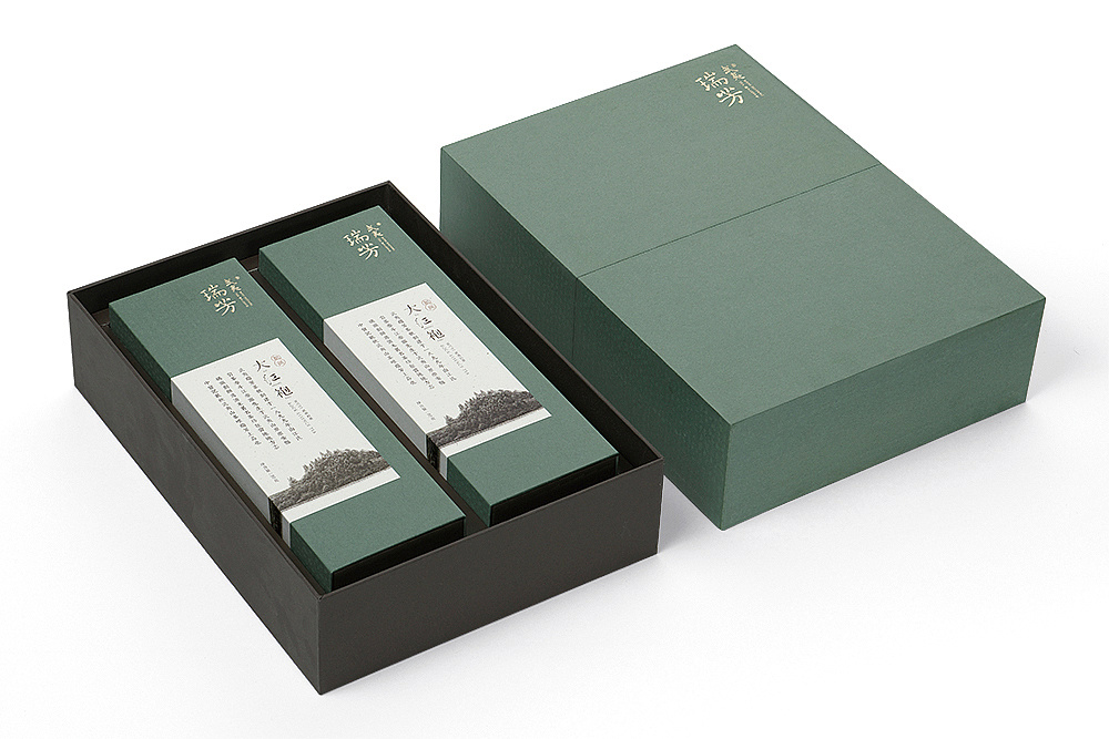 包裝盒內(nèi)部,延用飽和的綠色,氣氛靜謐,陶冶性情,更符合茶的氣質(zhì)。