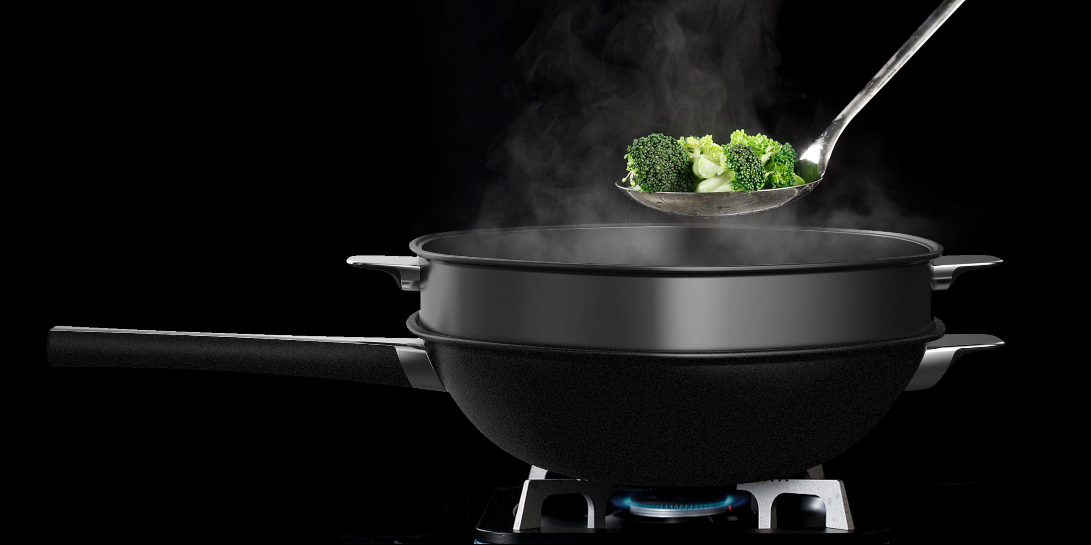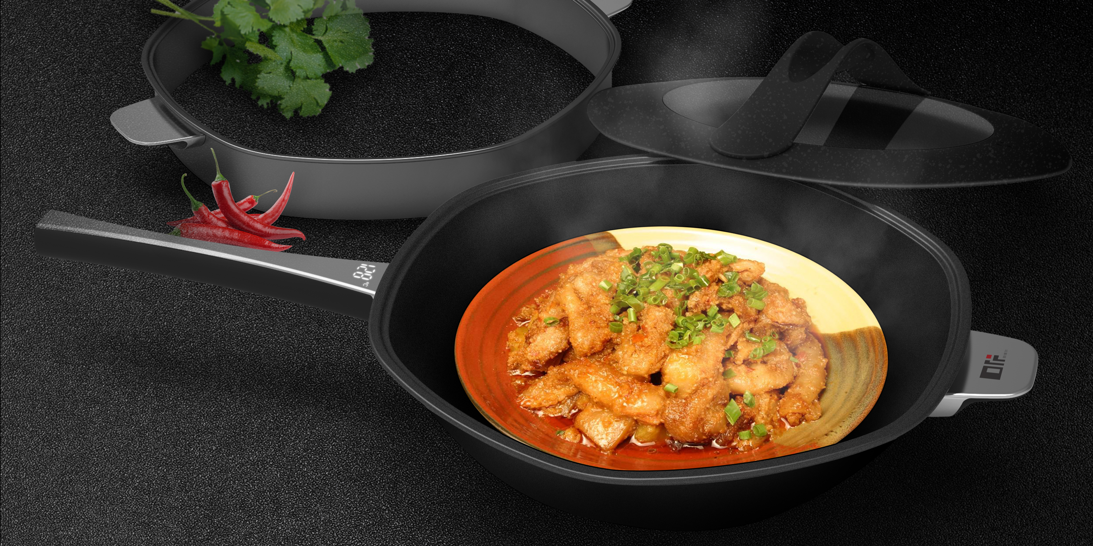 這款智能炒鍋讓大家簡單就能烹飪出美味食物,鍋邊六邊六角導流設計,避免了菜品出鍋時傾灑。人體工學手柄,舒適握感的流線型設計,單邊手持握,出鍋時不為油煙沖臉而愁。形似玉帶的弧形把手,可放置鍋鏟的凹槽設計徹底解放雙手。智能炒鍋內部置傳感器,手柄溫度顯示,APP全程語音指導,讓美食唾手可得,用戶能感受下廚的樂趣。