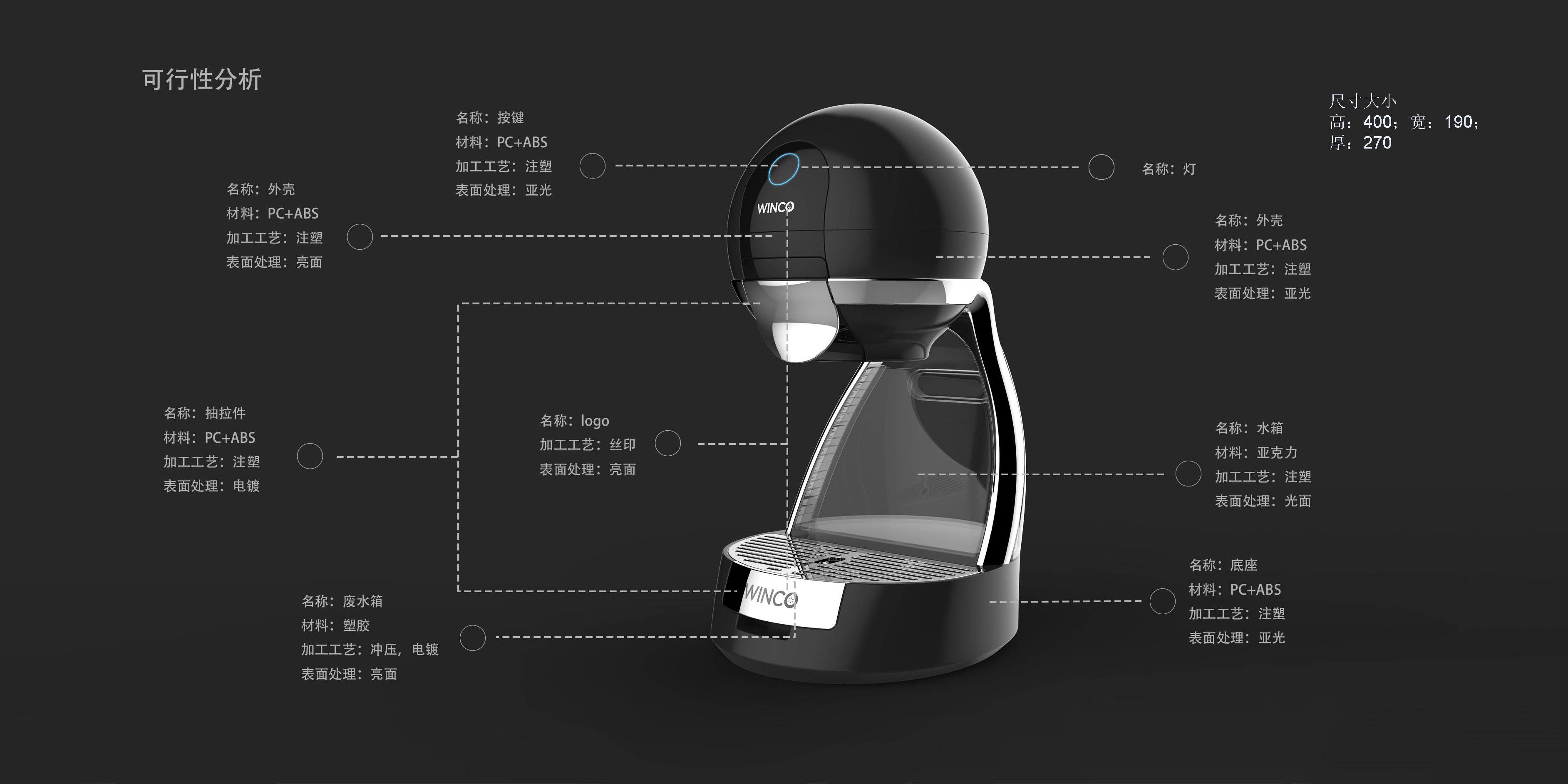 這款咖啡機(jī)的設(shè)計(jì)吸取了歐洲市場上代表產(chǎn)品型號(hào)的設(shè)計(jì)趨勢(shì),提取元素進(jìn)行了仿生設(shè)計(jì),整體形態(tài)簡約飽滿,柔軟可親,給承受巨大壓力的現(xiàn)代人的生活帶來趣味。獨(dú)特的視覺符號(hào),點(diǎn)綴現(xiàn)代家居環(huán)境,令生活充滿溫馨氣息。