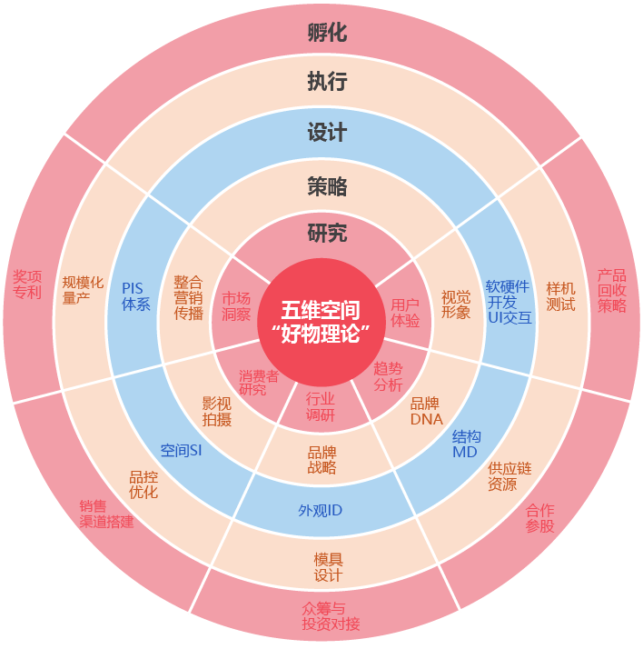 智加集團通過多年對于全產(chǎn)鏈設(shè)計服務(wù)的深度鉆研和業(yè)務(wù)實踐,已經(jīng)對于企業(yè)客戶及品牌如何更高效精準的開發(fā)出好的產(chǎn)品擁有自己獨特的方法論,構(gòu)建出五維空間模型深層次挖掘產(chǎn)品背后的邏輯并且創(chuàng)新思維作為驅(qū)動力,從研究、策略、設(shè)計、孵化、執(zhí)行多維度的去塑造這個時代真正的好物。